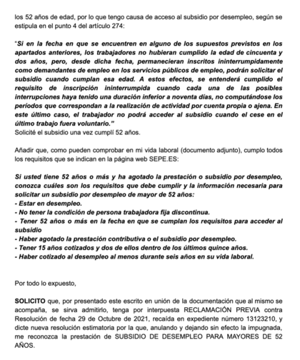Re: Me han denegado el subsidio para mayores de 52 años