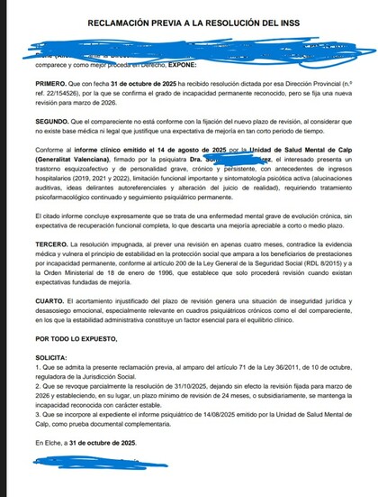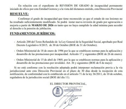 Mi consejo es tener toda la documentación médica al día, y no queda otra que esperar a los acontecimientos, ya veremos si nos llaman si no nos llaman, si vamos presencialmente, si nos revisan no presencialmente, como no sabemos nada, lo mejor es seguir viviendo con nuestras dolencias y estar lo más tranquilos posible por lo menos lo que yo intento.