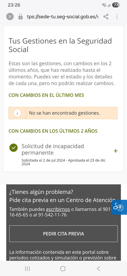 Es la aplicacion que cada un tiene en su comunidad de salud,visitas,medicacion etc,etc,donde pone "accesos" ahi ves quien entra a ver tus expedientes,solo es para eso,es la forma de controlar si el inss entra a ver tus informes,si gastas los medicamentos,quien entre ahi deja rastro durante un año,luego se borra,a mi me entraro una vez en la primera revision,tambien ves si un medico entra en en tu expediente de otro medico para consultar,es decir un traumatologo que tengas a un neurologo que tengas,cada paso que no sea el habitual de tu historial quien acceda queda ahi,no vale para nada mas,ni te dice nada de incapacidades ni nada parecido,pero va muy bien para controlar quien entra a mirar historiales,a muchos les controlan si gastan la medicacion por ahi ya que acceden a su receta electronica y si tu tienes una incapacidad y no lo tomas te "trincan" a una compañera mia la cobieron por eso y le quitaron la total y ahora este pendiente de juicio