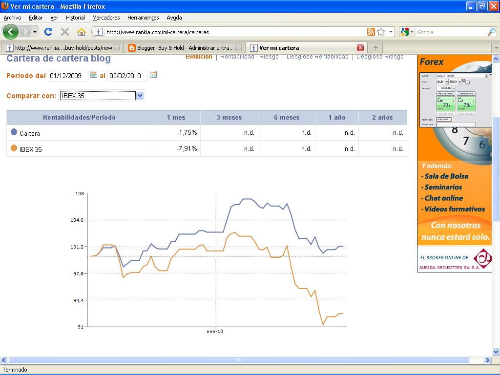 Por ultimo tenemos la evolución de la cartera frente al ibex: