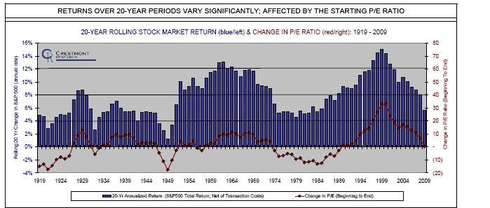 La segunda es la ciclicidad del mercado, periodos de valoración muy baja dan paso a periodos de valoración muy alta. Esto produce que las mayores rentabilidades se produzcan al comprar muy barato y vender muy caro, lo cual aunque parezca un tópico, se produce cada cierto periodo de tiempo. Lógicamente también se produce lo contrario, aquellos que se dejan llevar por los cantos de sirena (valga el ejemplo de la burbuja de Internet en el año 2000) compran caro y venden barato, obteniendo la peor rentabilidad.