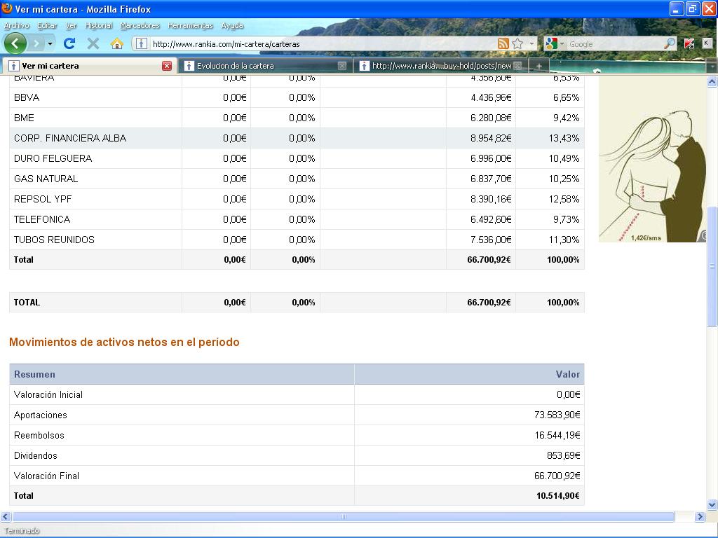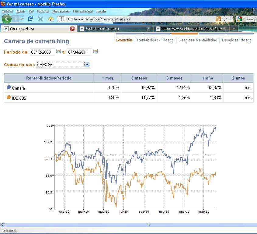Aquí tenéis un gráfico de la evolución en este periodo, comparado con el ibex: