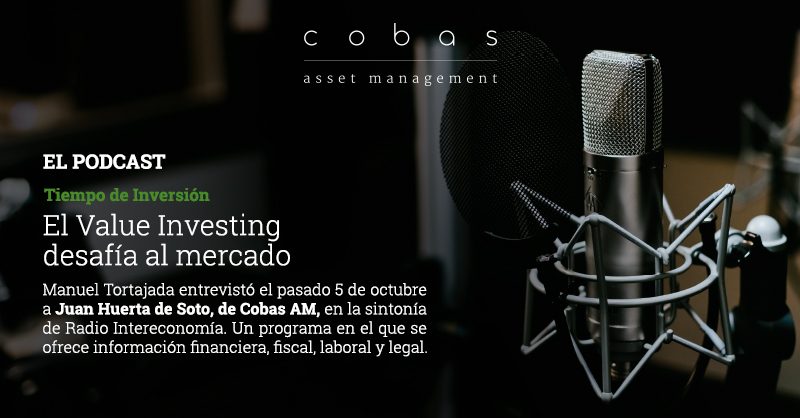 tenemos el gusto de compartir con ustedes el capítulo del programa de inversión y finanzas "Tiempo de Inversión", en el que Manuel Tortajada entrevistó el pasado 5 de octubre a Juan Huerta de Soto, de Cobas AM, en la sintonía de Radio Intereconomía.