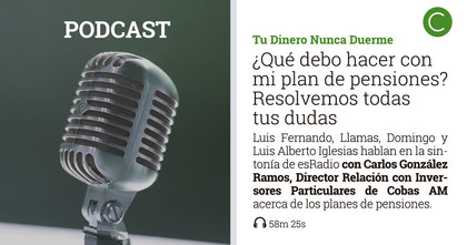 Tenemos el gusto de compartir con ustedes el capítulo del programa de inversión y finanzas "Tu Dinero Nunca Duerme", en el que Luis F. Quintero y Manuel Llamas resuelven nuestras dudas acerca de los planes de pensiones con Carlos González Ramos, Director de Relación con Inversores Particulares de Cobas Asset Management.