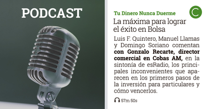 En este programa de Tu Dinero Nunca Duerme y con la ayuda del Director comercial (Relación con Inversores, Marketing y Comunicación) de Cobas AM, Gonzalo Recarte, hacemos un repaso a los principales inconvenientes que aparecen en los primeros pasos de la inversión para particulares y cómo vencerlos.