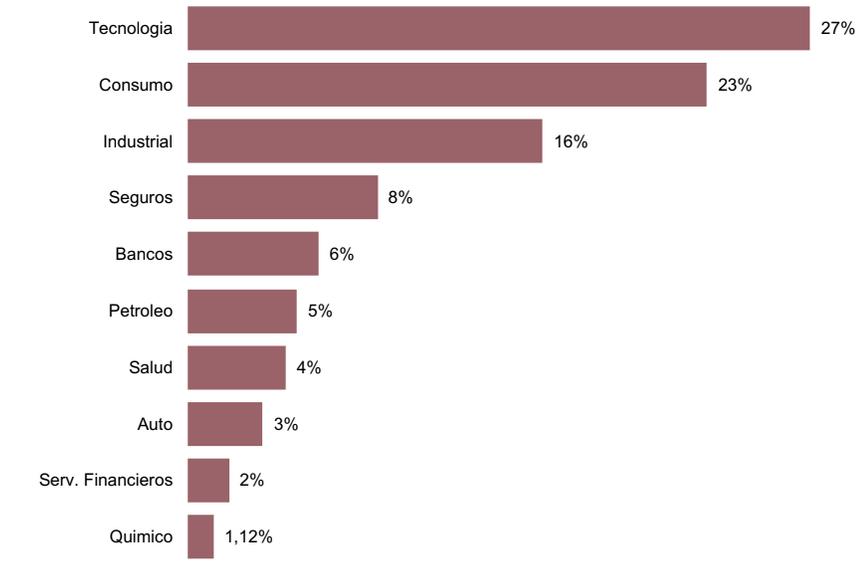 Seguimos estando posicionados sectorialmente en compañías de consumo y de servicios y con posiciones reducidas en bancos, autos, retail y recursos naturales, así como en compañías petrolíferas que tienen mayor exposición al ciclo económico y que han sido los más afectados por las bajadas del último mes.