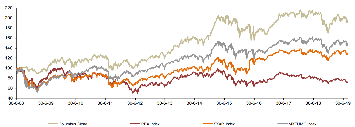 Desde principios de año, la rentabilidad es del 12.48%. A cinco y siete años, la rentabilidad es del 27.44% y del 80.25% respectivamente y desde el inicio de la gestión de Columbus, en julio del 2008, del 97.51% superando ampliamente la de los índices europeos de renta variable. La volatilidad de la cartera se mantiene en el 11.7%, muy inferior a la media de los últimos años y similar a la volatilidad del STOXX 600.