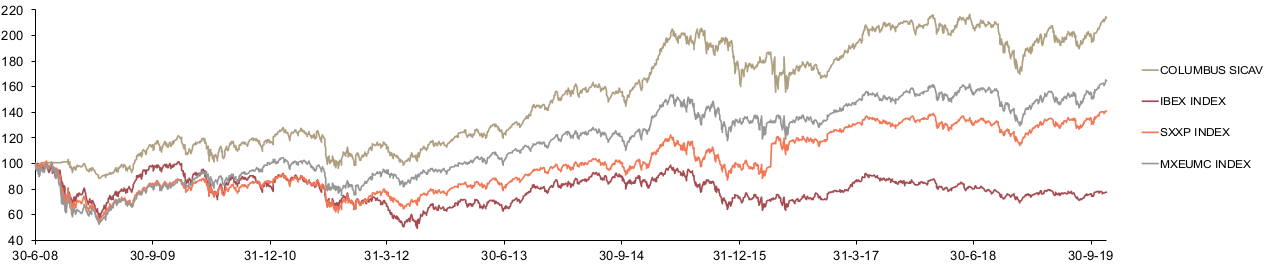 Durante el mes de noviembre, Inversión Columbus subió un 4.47% frente al 2.69% del STOXX 600, el 3.65% del MSCI Mid Cap y el 1.02% del IBEX 35. Desde principios de año, la rentabilidad es del 21.95%. A tres y siete años, la rentabilidad es del 26.43% y 82.46% respectivamente y, desde el inicio de la gestión de Columbus en julio del 2008, del 114.14%, superando ampliamente la de los índices europeos de renta variable. La volatilidad de la cartera se mantiene en el 11.7%, muy inferior a la media de los últimos años y similar a la volatilidad del STOXX 600.