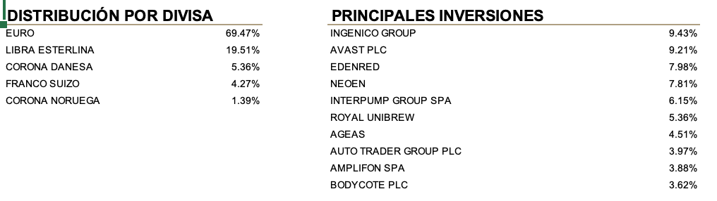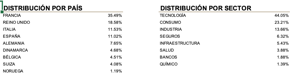 Seguimos posicionados en compañías donde vemos mejores relaciones de riesgo y rentabilidades potenciales, especialmente tecnología, consumo y servicios, y posiciones nulas en sectores cíclicos (petróleo, materias primas, autos) e infraponderados en bancos (apenas un 2% o financieros en general). Hemos aprovechado la caída para invertir principalmente en compañías que ya poseíamos y tomar posiciones en valores del sector de infraestructuras que antes de la caída estaban caros. La recuperación desde mínimos no ha sido uniforme y se ha centrado en compañías de calidad con balances saneados y deuda bajo control, que han recuperado en muchos casos las cotizaciones que tenían antes de la crisis. Consideramos que la fase inicial de rebote en forma de “V” ha llegado a su fin. En los próximos meses se producirán rotaciones de sectores y selección de valores que provocarán valoraciones injustificadas que trataremos de aprovechar.