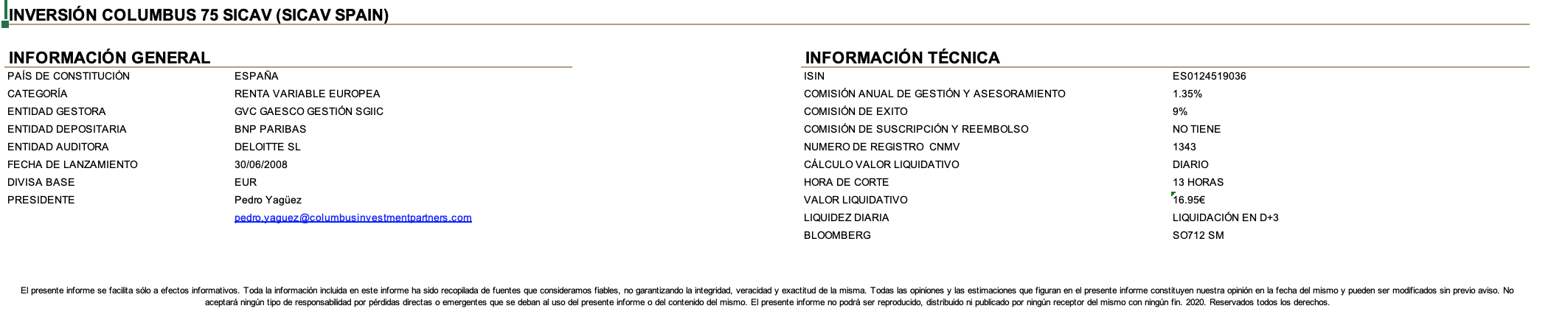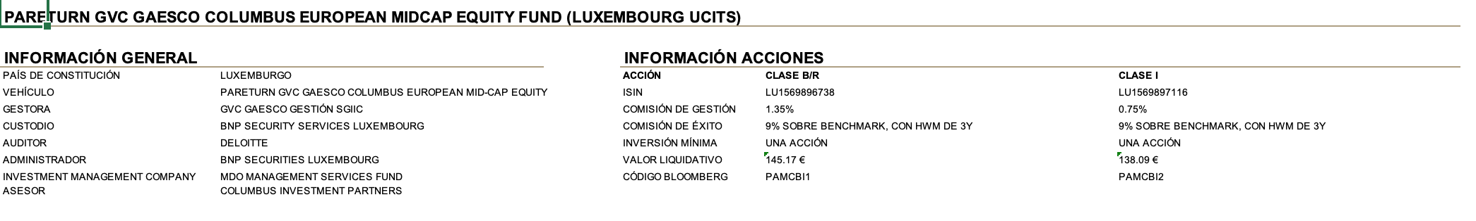 Desde el pasado 14 de junio de 2018 se encuentra operativa la estructura Master-Feeder entre Inversión Columbus 75 Sicav (feeder) y el compartimento en Luxemburgo, Pareturn GVC Gaesco Columbus European Midcap Equity Fund (Master). Esta estructura permite a los inversores nacionales y extranjeros acceder a la estrategia de Columbus desde un vehículo establecido en Luxemburgo, con dos clases de acciones para cliente institucional y retail. Gracias por su confianza y cuídense por favor.