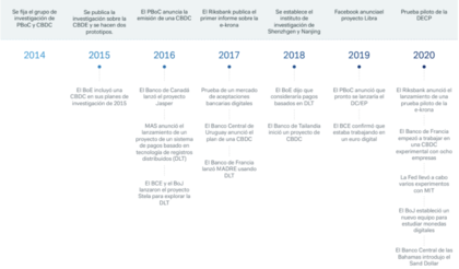 Calendario de la investigación y experimentos en CBDC en varios países