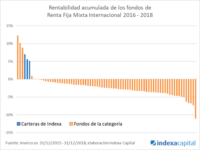La propuesta de Indexa inicial se está cumpliendo, tal y como preveíamos inicialmente: los inversores en España están mucho mejor en una cartera diversificada de fondos indexados de bajo coste que en los fondos de inversión gestionados por bancos con elevadas comisiones. En 2018 la evolución de los mercados ha presentado más altibajos que en 2016 y 2017, pero estamos convencidos de que la rentabilidad a largo plazo de nuestras carteras será mayor que la obtenida por el 97% de los fondos e