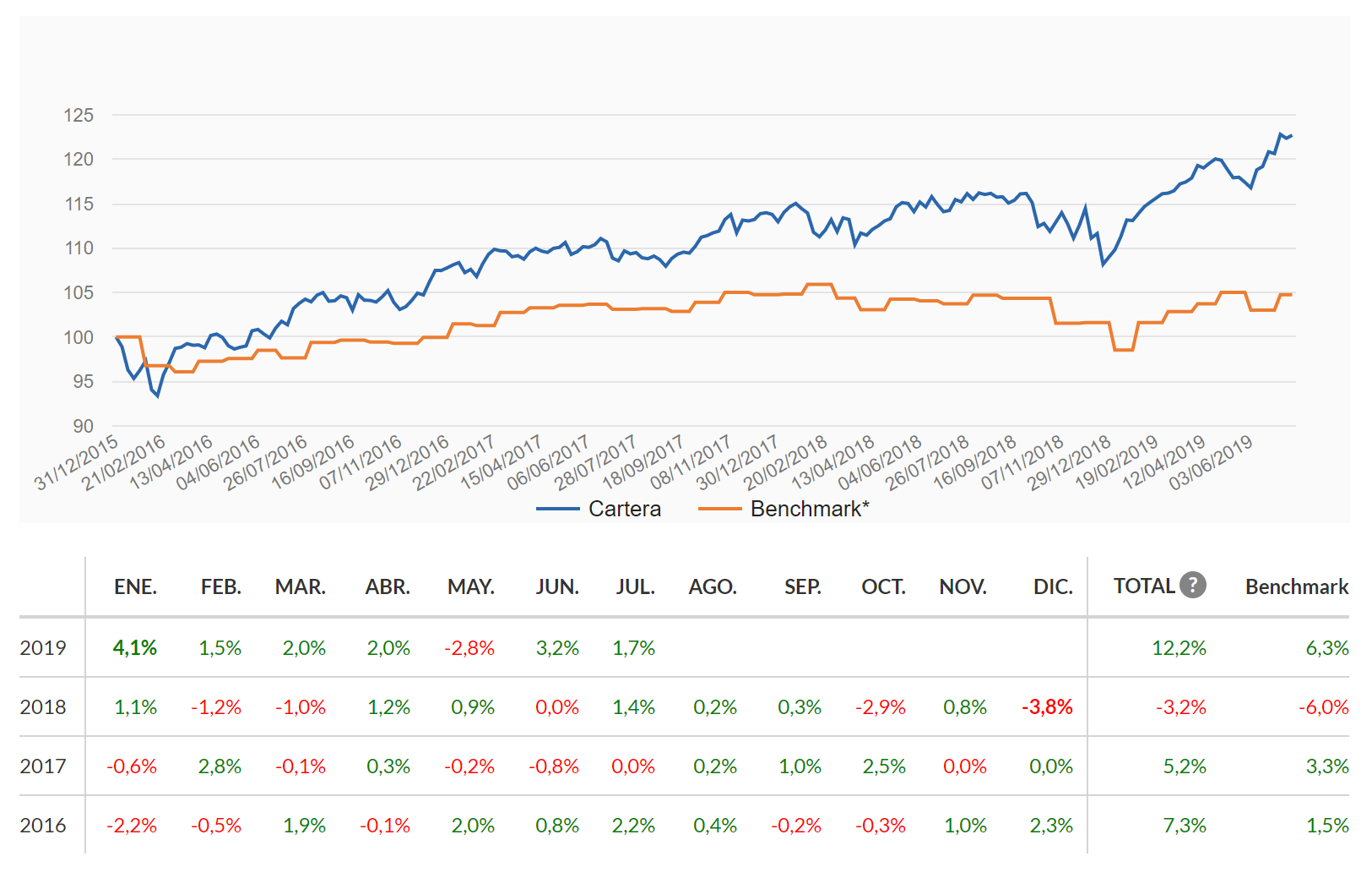 - El riesgo de la cartera y el Benchmark deben ser similares.