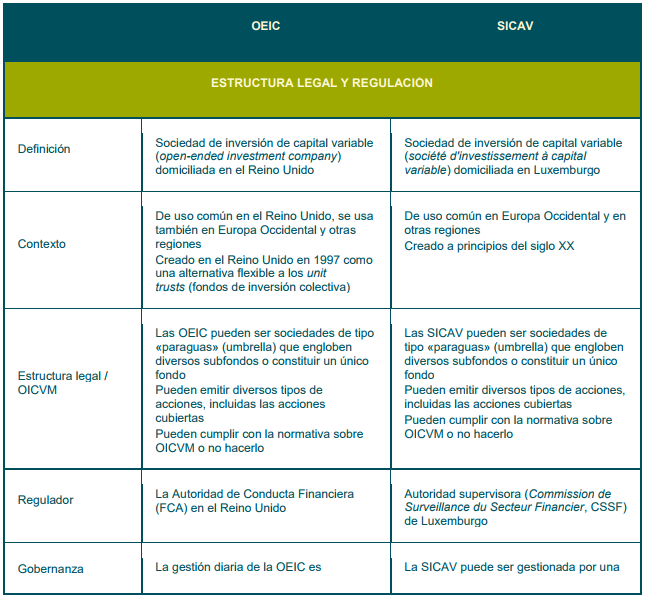 ¿Cuáles son las principales diferencias entre OEIC y SICAV?