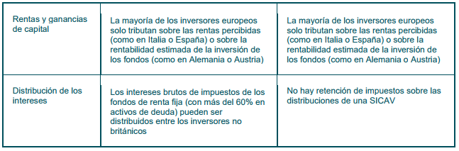 A fin de que esta acción corporativa resulte neutral fiscalmente en España para inversores minoristas, estos deben realizar un traspaso ordinario del actual fondo domiciliado en Reino Unido a su equivalente luxemburgués antes de las 11.30h de la mañana del próximo jueves 15 de marzo. Aquellos clientes que permanezcan en la versión británica de estos fondos en dicha fecha podrían verse sujetos a obligaciones tributarias como resultado de las plusvalías generadas.