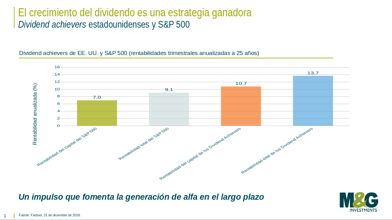 En nuestra opinión, los dividendos son la señal por excelencia de la disciplina financiera de una compañía y de su compromiso con la creación de valor para el accionista. También estamos convencidos de que una política de reparto de dividendos crecientes ayuda a una compañía a mejorar: al fin y al cabo, para soportar un flujo de dividendos creciente, una compañía debe hacer crecer su negocio de forma disciplinada.