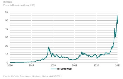 Sus recientes fluctuaciones de precios han suscitado dudas sobre el potencial del bitcoin como alternativa a los activos seguros o como depósito de valor. El 21 de febrero alcanzó un máximo de 58.000 USD. Al día siguiente, bajó a 47.000 USD –su precio de una semana antes. Este tipo de volatilidad tampoco es nueva: las oscilaciones del precio en dólares del bitcoin siempre han sido extremas.