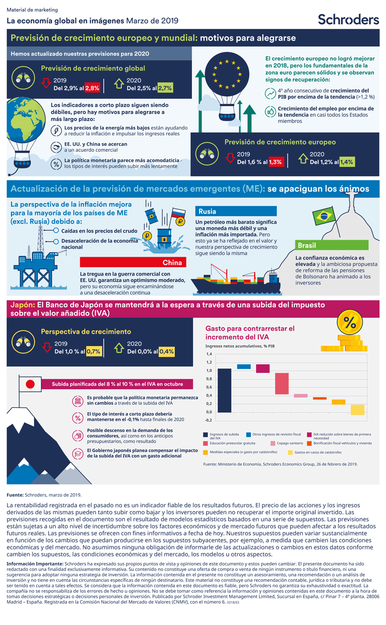 Abril llega y con ello lo hace nuestra infografía resumiendo el panorama global en Marzo, en el cuál se han reajustado las previsiones de crecimiento tanto a la baja para este año, como al alza para 2020, el petróleo vuelve a reclamar influencia en la escena internacional y EE.UU. y China parece que empiezan a acercar posturas.