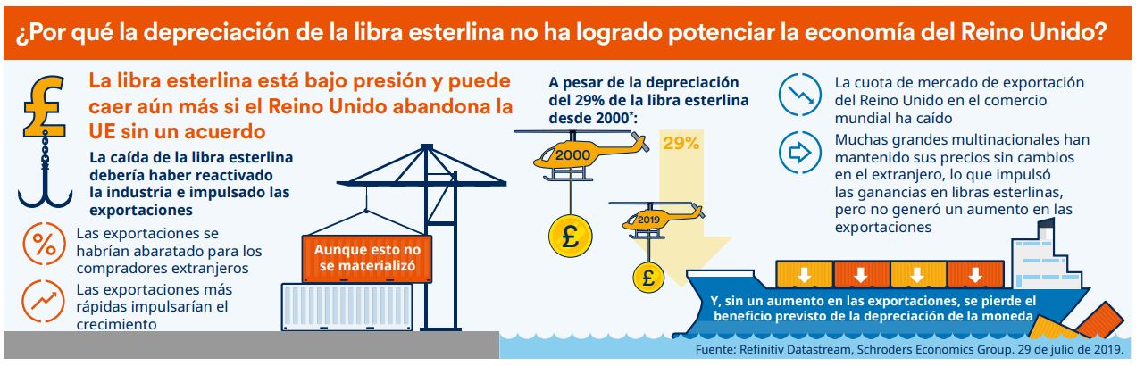 En la infografía de este mes explicamos por qué la depreciación de la libra no ha logrado impulsar la economía del Reino Unido y analizamos las medidas que están adoptando los gobiernos para potenciar el crecimiento.