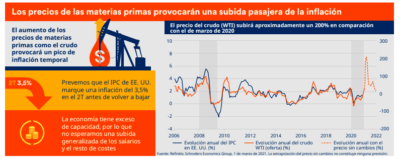Por otro lado, la inflación sigue siendo una preocupación persistente para los inversores, pero seguimos considerando que el próximo repunte es temporal y viene impulsado por los efectos de los precios de las materias primas.