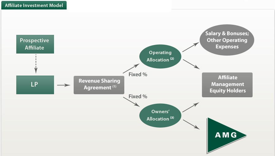 En contraste con otras entidades que tratan de adquisiciones directas de las empresas de inversión, estructura de inversión de AMG alinea los intereses de los afiliados, a sus clientes, y AMG.