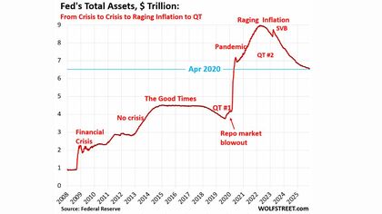 Bueno, pues deben haber visto un elevado riesgo en el desempleo, porque con una inflación todavía en torno al 3%, han decidido empezar a reinvertir los vencimientos ycomprar T-billsa corto plazo en el mercado (bonos del Tesoro de EE. UU.), buscando estabilizar el tamaño de su balance en torno a 6,5 billones de dólares, muy por encima de donde estaba antes de la crisis del Covid.
